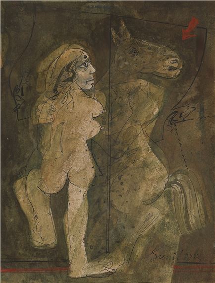 SUNIL DAS (1939 - 2015) | Untitled | Watercolour and marker on paper | 19 x 14.5 in (48.5x37 cm) | 2002